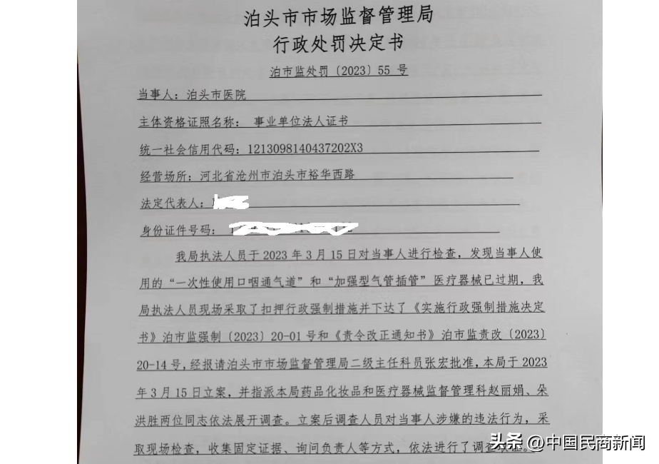 河北泊头:泊头市医院因使用过期医疗器械被处罚